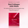 Mascarilla facial en gel con textura tipo jello, formulada con un potente complejo de colágeno rojo para brindar un tratamiento intensivo que ayuda a mejorar visiblemente la firmeza y elasticidad de la piel. Su fórmula avanzada actúa sobre los signos de cansancio y envejecimiento, dejando la piel más tersa, revitalizada y luminosa.
