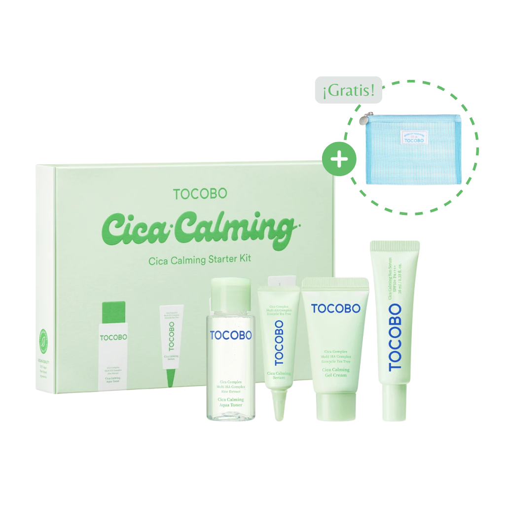 Un set completo para calmar, hidratar y proteger tu piel sensible. El Cica Calming Starter Kit de TOCOBO incluye cuatro mini tallas formuladas con Centella Asiática (Cica), ideal para pieles irritadas, enrojecidas o que necesitan equilibrio.